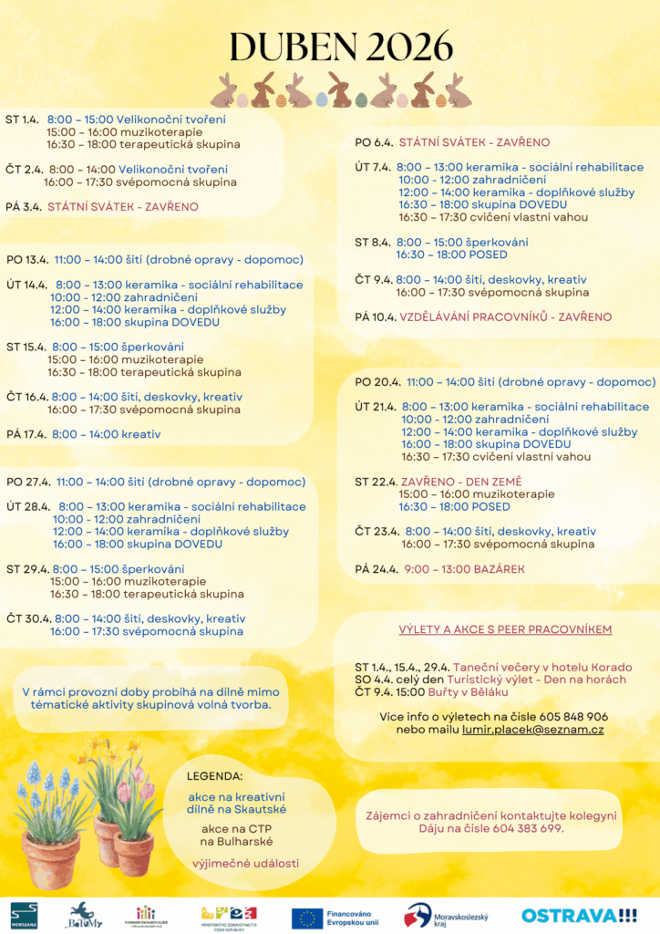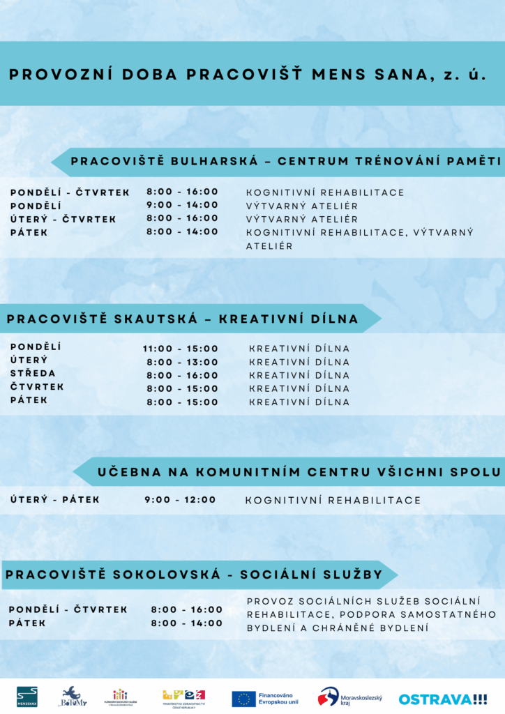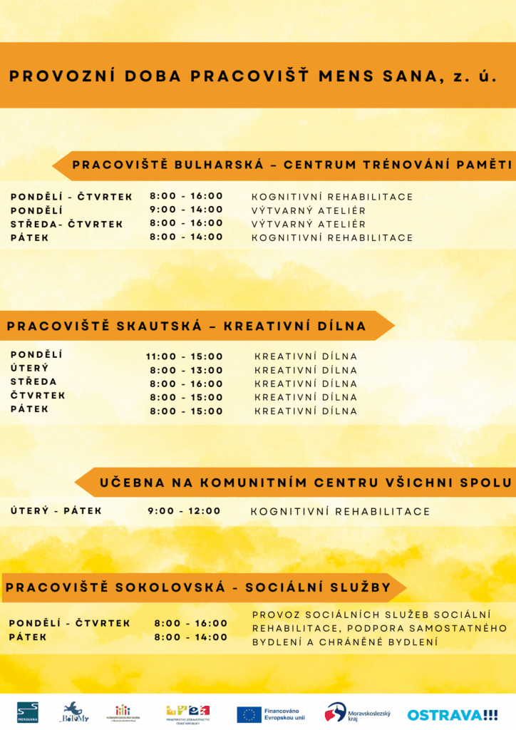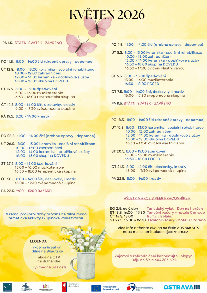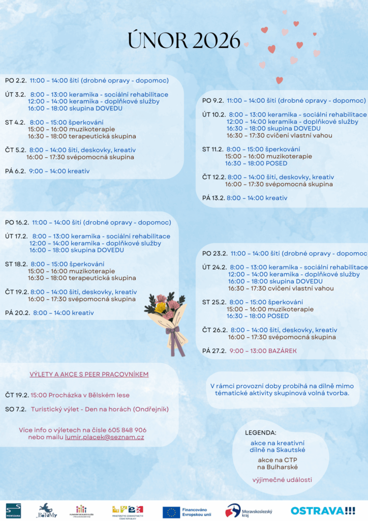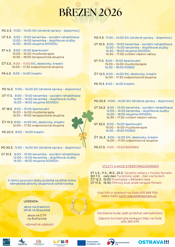 PROGRAM MENS SANA, z.ú. na jednotlivé měsíce Veškeré akce se konají za finanční podpory MPSV, Moravskoslezského kraje a Statutárního města Ostrava. ZMĚNA PROGRAMU VYHRAZENA!